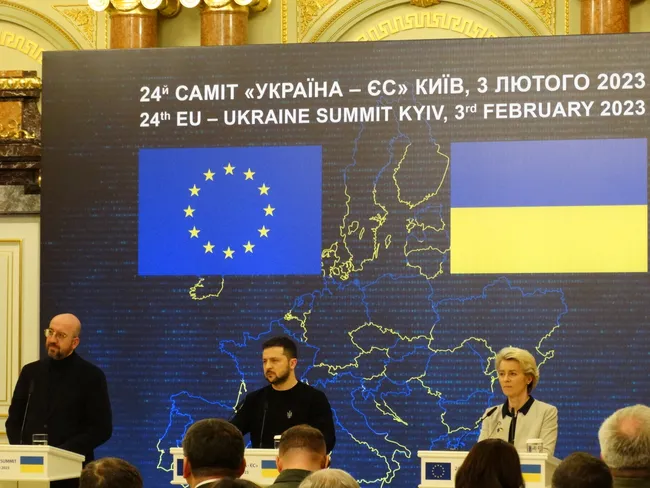 Așa cum a ținut să afirme Președinta Comisiei Europene, Ursula von der Leyen, de la fondarea UE (sub forma Comunității Europene a Cărbunelui și Oțelului în 1951) de către 6 țări (Belgia, Franța, Italia, Luxemburg, Olanda și Republica Federală Germană) fiecare stat care s-a alăturat ulterior a trecut prin propriul său proces de aderare. Iar Ucraina este un caz cu totul unic, dat fiind contextul actual. Pe lângă sprijinul material substanțial acordat Ucrainei, Uniunea va anunța al 10-lea pachet de sancțiuni contra Rusiei în preajma datei de 24 februarie când se va împlini un an de la invadarea pe scară largă a Ucrainei de către armata lui Putin.
