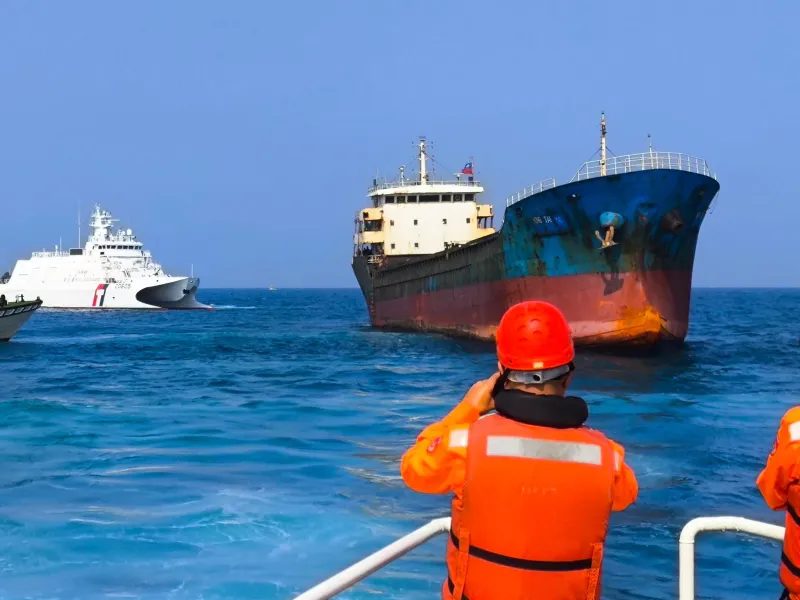 Nava de marfă înmatriculată în Togo, Hongtai, a fost interceptată în apele dintre coasta de vest a insulei sale principale și îndepărtatele Insulele Penghu.
