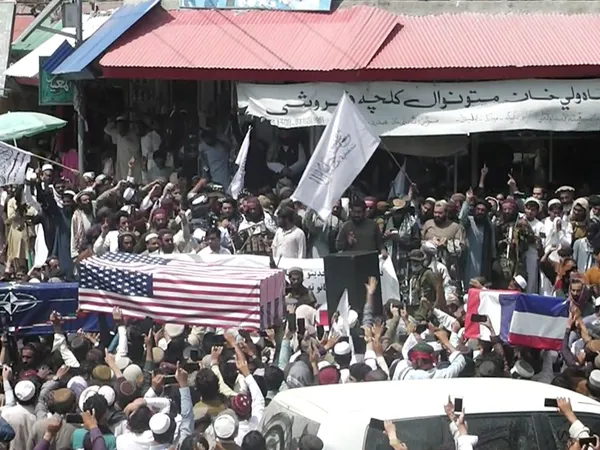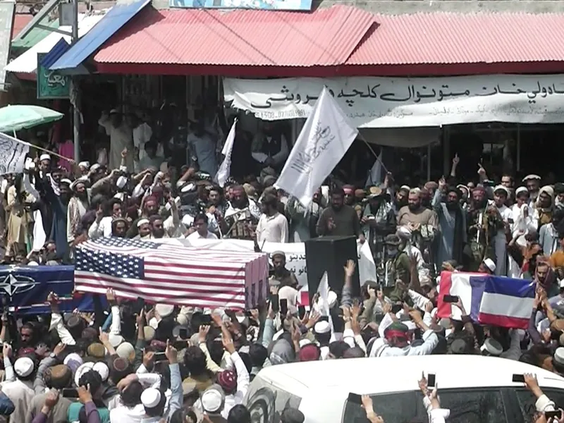 Fotografii apărute marți arată o mulțime de talibani și susținători ai acestora organizând o „înmormântare” pentru forțele americane și NATO după ce acestea s-au retras din Afganistan. Insurgenții au sărbătorit acest eveniment mărșăluind pe străzile orașului Khost.