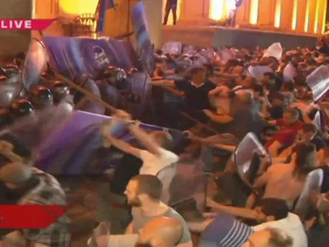 Proteste violente au avut loc joi seară la Tbilisi, unde mii de oameni s-au adunat în fața Parlamentului și au încercat să intre în clădire, în timpul unui discurs au unui parlamentar rus. Au avut loc ciocniri între manifestanți și polițiști, care au folosit gaze lacrimogene.