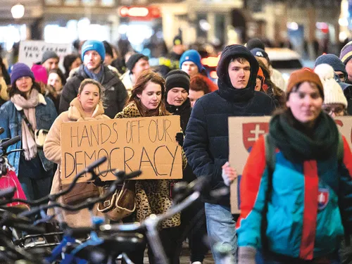 De la începutul anului, zeci de mii de persoane protestează cu regularitate la Bratislava împotriva guvernului iliberal al lui Robert Fico. Protestatarii spun că apără apartenența Slovaciei la UE și valorile acesteia, denunțând orientarea pro-rusă a lui Robert Fico.