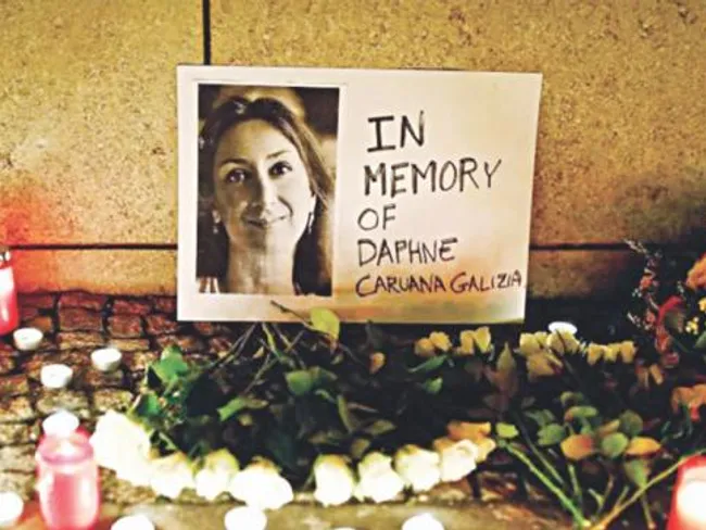 Daphne Caruana Galizia a fost ucisă la 16 octombrie 2017 cu ajutorul unei încărcături explozive plasate sub automobilul său în apropierea casei unde locuia, în satul maltez Bidnija. Trei bărbaţi - fraţii Alfred şi George Degiorgio şi Vince Muscat - au fost puşi sub acuzare pentru plasarea bombei, în faţa instanţei ei pledând nevinovat.