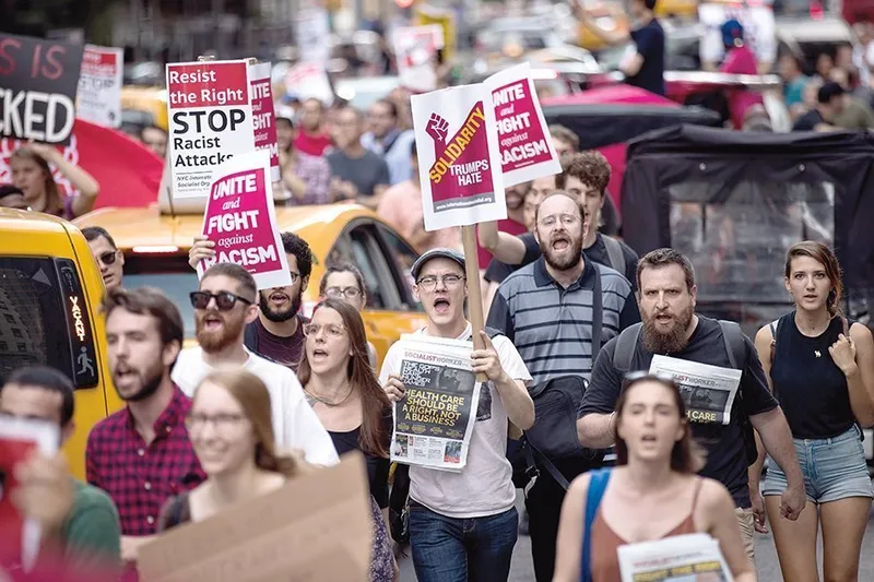 Extrema stângă nu s-a lăsat mai prejos. În decembrie 2017, doi presupuși membri ai organizației Antifa, Thomas Massey și Tom Keenan, au fost acuzați că au atacat doi soldați, Alejandro Godinez și Luis Torres, după ce i-au confundat cu participanții la mitingul „Noi, poporul“ din Philadelphia. Soldații au declarat că au fost bătuți și numiți rahaturi etnice. Cei doi atacatori au fost trimiși în judecată pentru asalt și conspirație.