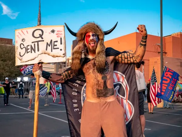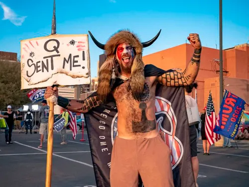 Miercurea trecută, Angeli, 33 de ani, a fost fotografiat și filmat în timpul asaltului asupra Capitoliului, când sute au intrat cu forța în clădirea Congresului, în timp ce purta un megafon. Cu culorile steagului american pictate pe față, pieptul gol cu numeroase tatuaje clar vizibile și o pălărie din blană cu coarne de bivol, imaginea sa a făcut înconjurul lumii.