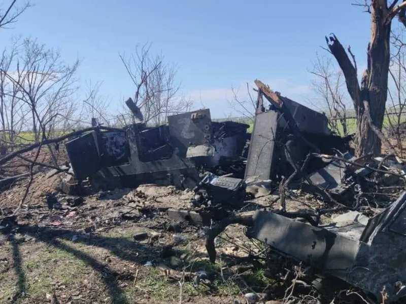 Mașina era parcată în centrul orașului, în apropierea Casei de Cultură, unde își desfășoară acum activitatea oficialii ruși din oraș, potrivit unui reportaj al canalului de știri rusesc de stat RT.
