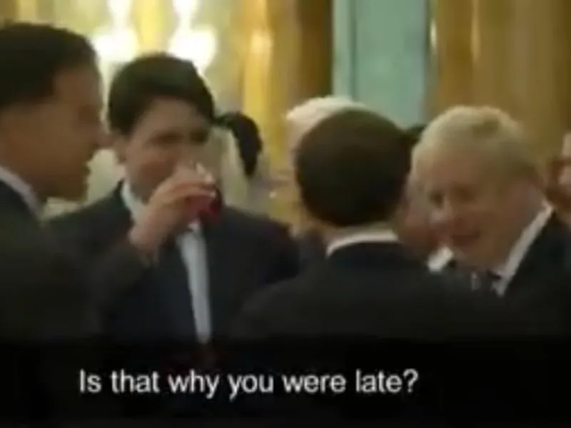"Vezi cum membrilor echipei lui le cade maxilarul la pământ", mai spune la un moment dat Justin Trudeau. Boris Johnson zâmbește și niciunul dintre liderii prezenți al discuție nu realizează că discuția este înregistrată.