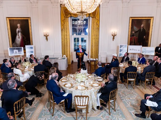 Preşedintele american Donald Trump a organizat miercuri, 15 octombrie, un dineu fastuos pentru a mulţumi miliardarilor şi marilor companii pentru donaţiile făcute pentru o nouă sală de bal, în curs de construcţie la Casa Albă, în valoare de 250 de milioane de dolari.