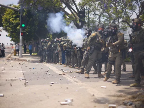 Ofițerii i-au respins cu gaze lacrimogene și grenade flash-bang, care pot asurzi temporar o persoană.