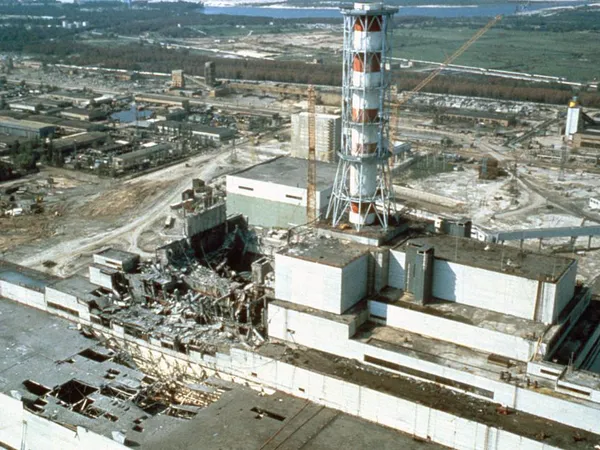 Reactorul este încapsulat într-un sarcofag conceput pentru a limita eliberarea de constituienți radioactivi.