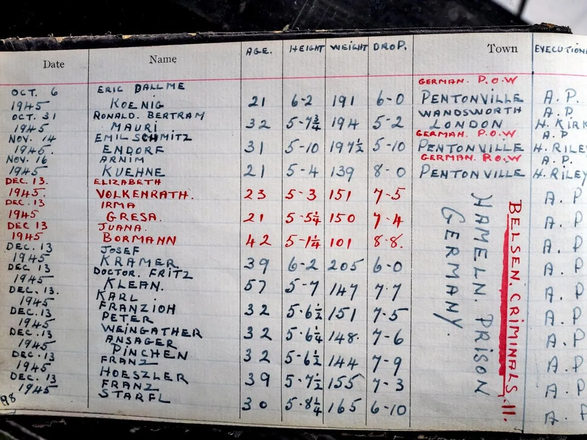 Printre aceștia se numărau Josef Kramer, "Bestia de la Belsen", care fusese comandant în faimosul lagăr de concentrare, și colega de război Irma Grese, o gardiană feroce la Auschwitz.