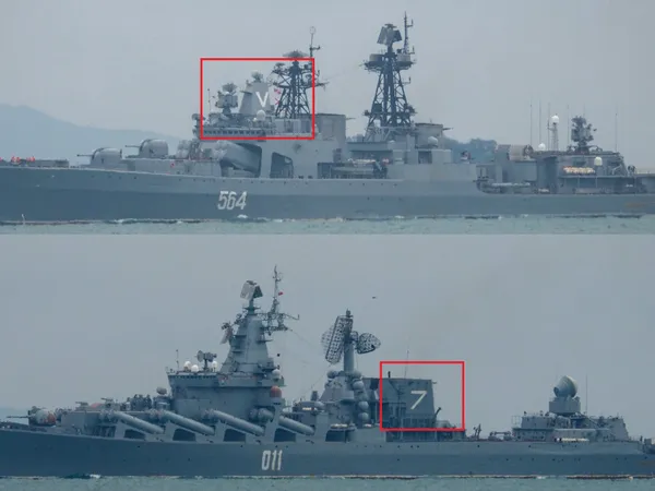 El a subliniat că navele aveau pictate pe ele simboluri ale agresiunii rusești împotriva Ucrainei - semnele "Z" și "V".