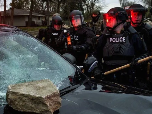 Protestatarii în schimb au aruncat cu pietre și alte obiecte în clădirea poliției și au spart 20 de magazine din zonă, potrivit comisarului responsabil de siguranța publică din Minnesota.