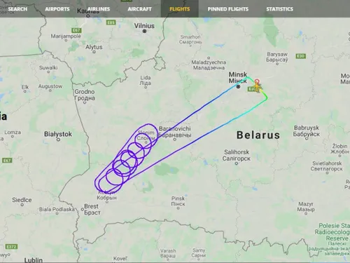 Traiectoria aparatului arată însă că s-a învârtit de mai multe ori în apropiere de granița cu Polonia, descriind bucle în aer, fără să iasă din spațiul aerian al Belarusului.