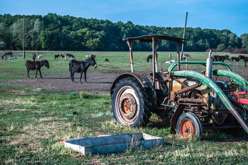 Măgarii stau pe un câmp uscat, la o fermă din Hortobagy, în estul Ungariei, pe 14 august 2022 - Foto: Profimedia Images