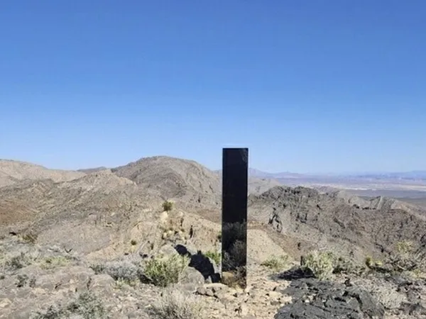 „În weekend, Poliţia din Las Vagas a reperat acest monolit misterios în apropierea Glass Peak, în nordul văii”, într-o rezervă naturală, anunţă pe X poliţia şi postează o poză drept dovadă.