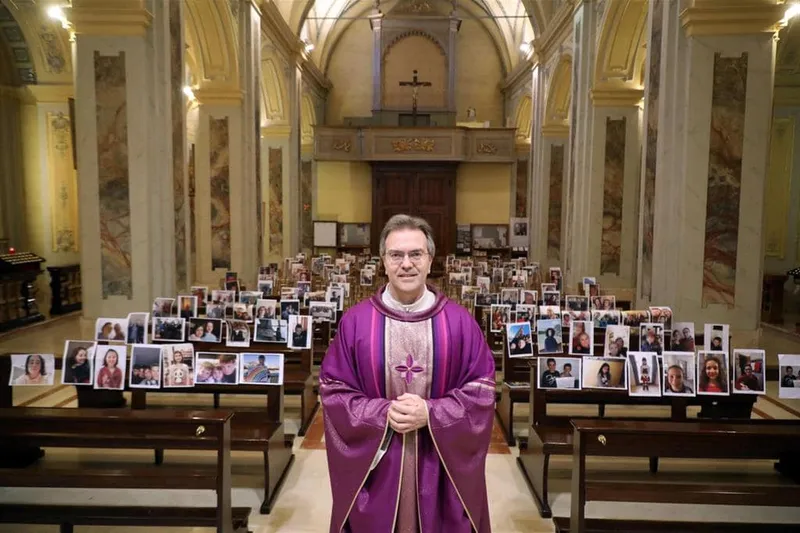 Un preot din Italia a pus fotografiile credincioșilor în biserică, iar enoriașii văd slujba online