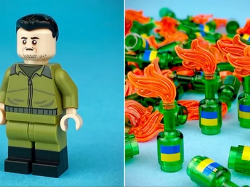 Un producător de LEGO custom strânge bani pentru Ucraina: figurină Zelenski și cocktail-uri Molotov