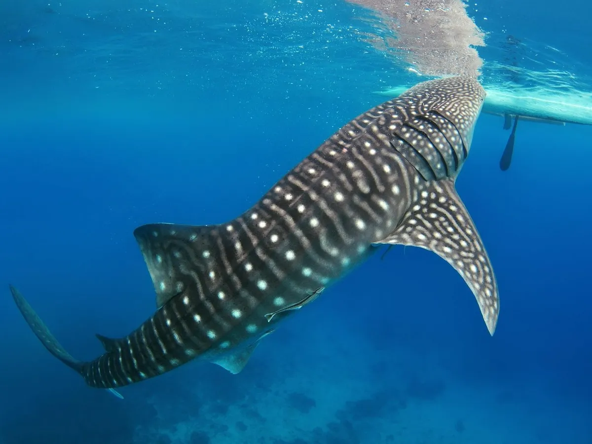 Descoperirea a avut loc duminică seara, iar bestia marină pare a fi un rechin balenă, al doilea pește ca mărime din lume.