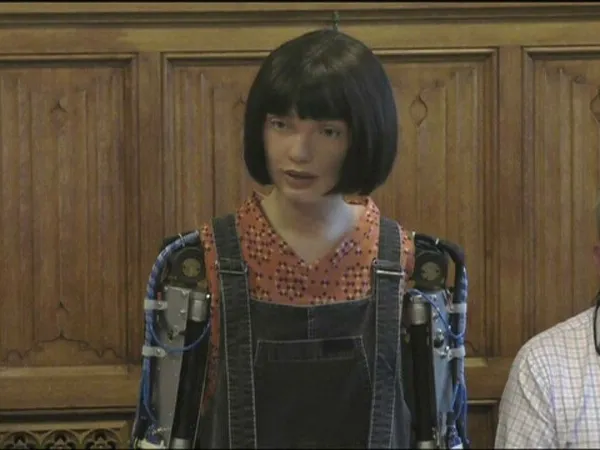 Aceasta a răspuns la întrebări alături de șeful proiectului Ai-Da și de directorul galeriei de artă Aidan Meller, în cadrul unei sesiuni televizate găzduite de Comitetul pentru comunicații și digital al Camerei Lorzilor.