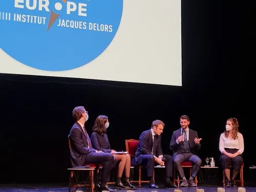 Eduard Rotariu a făcut parte din grupul de patru tineri europeni care au discutat cu Emmanuel Macron. S-a întâmplat pe scena teatrului Odeon, cu ocazia aniversarii a 25 de ani de la înființarea Institutului Jacques Delors, unul dintre cele mai respectate think-tank-uri europene.