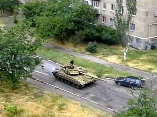 Un tanc rusesc a tras cu un obuz asupra unui autoturism oprit pentru a-i oferi prioritate