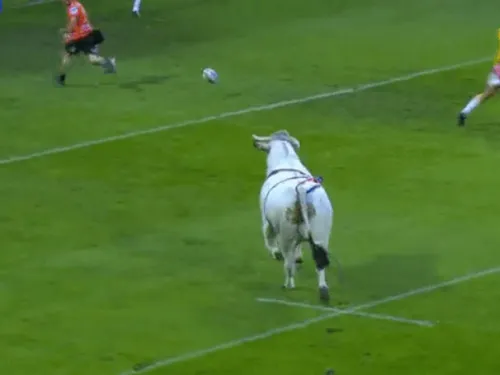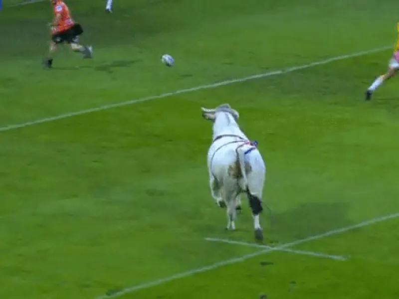 Un taur a vrut să „joace” rugby: A alergat jucătorii pe teren în timpul unui meci. Cum a ajuns acolo