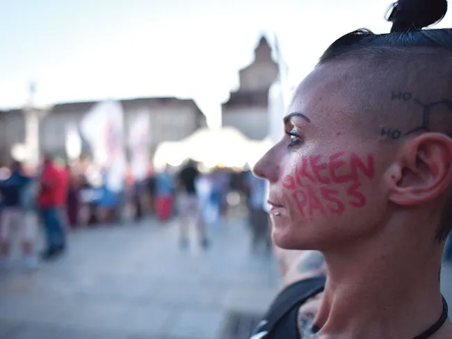 Manifestațiile împotriva vaccinării și a certificatelor verzi au fost însoțite de cele mai multe ori de însemne și sloganuri antisemite.