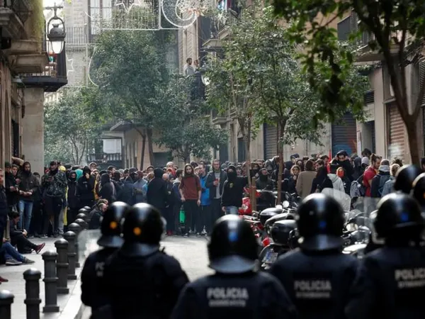 Mii de manifestanți s-au îndreptat către aeroport într-o încercare de a bloca accesul la terminal în urma hotărârii judecătorești, după ce liderii lor au primit condamnări cu închisoare în urma tentativei eșuate de a-și declara independența în 2017.