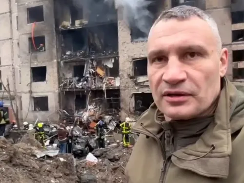 Kyiv mayor Klitschko published a video from the scene of a shell hitting an apartment building in Solomensky district. pic.twitter.com/64GhG6fa5E