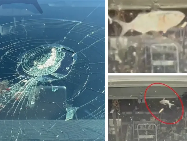 "Eram ca și cum, Sfinte Sisoe. Uită-te la asta. Și i-am spus că parcă sunt solzi de pește și sânge pe parbriz. Ne gândeam că cineva l-a aruncat în mașină. Este cineva după noi? Sunt vandali? Ne bucurăm că nu ne-a lovit", a adăugat proprietarul.