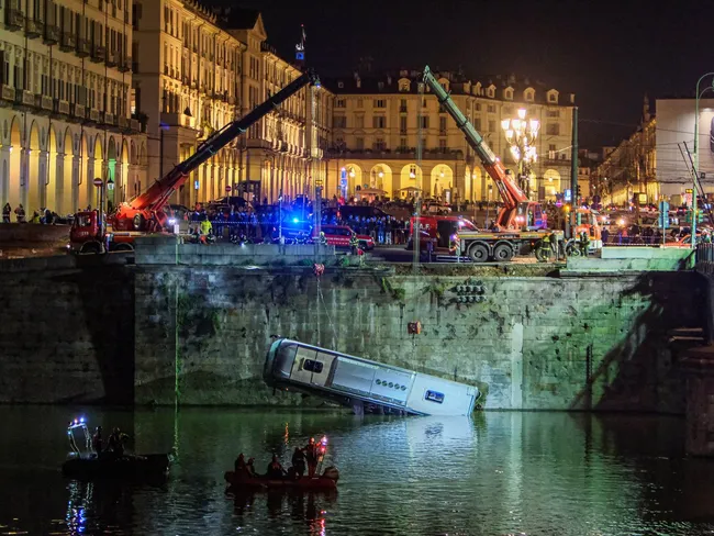 Autocarul care a căzut în Râului Po venea în centrul orașului Torino pentru a lua un grup de elevi aflat într-o excursie. Din fericire, în momentul accidentului, la bordul vehiculului nu se aflau alte persoane în afară de șofer. Dar, în „cursa” către apele râului autocarul a acroșat și rănit trei pietoni.