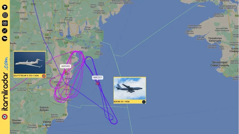 În cursul dimineții, un Boeing P-8A al USNavy a efectuat o misiune SIGINT de rutină, orbitând deasupra Deltei Dunării, în timp ce după-amiază, două mijloace și-au desfășurat misiunile în zonă: un Gulfstream E.550 CAEW al Forțelor Aeriene italiene și un Boeing RC-135W al RAF”, potrivit portalurilor de monitorizare a spațiului aerian.