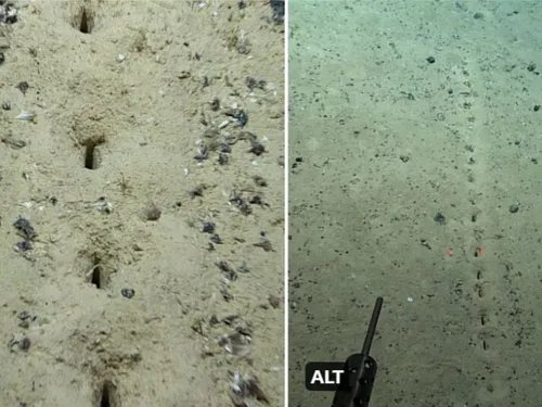 „Am observat mai multe dintre aceste seturi sublineare de găuri în sedimente. Aceste găuri au fost raportate anterior în regiune, dar originea lor rămâne un mister", a raportat NOAA Ocean Exploration.