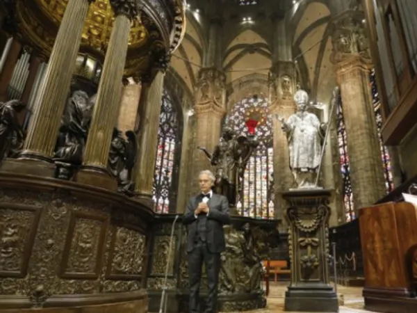 Vocea tenorului italian Andrea Bocelli a răsunat duminică, cu ocazia Paştelui catolic, în interiorul Domului din Milano, complet gol, pentru un concert unic gândit ca „o rugăciune” în faţa coronavirusului, transmite AFP, preluată de Agerpres.