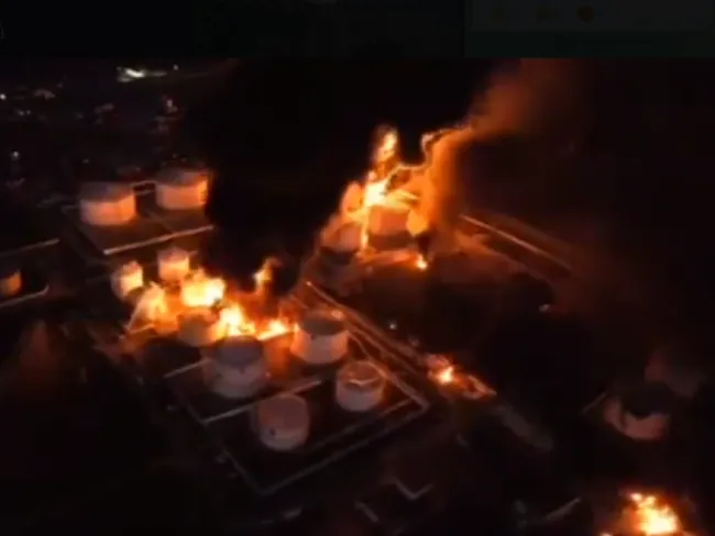 Echipele de intervenție ruse, citate de agenția RIA Novosti, au confirmat că incendiul nu a fost stins și continuă să se extindă, cu trei rezervoare de produse petroliere în flăcări.