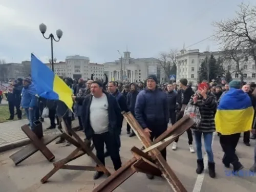 La un miting pașnic la Herson, armata rusă a folosit forța împotriva persoanelor care protestau împotriva agresiunii ruse și i-a rănit pe unii dintre ei.
