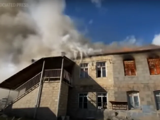 VIDEO Armenii își ard casele înainte de a se muta din teritoriile returnate Azerbaidjanului