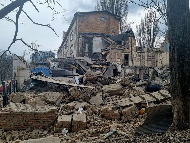 Ministerul Culturii a raportat că partea centrală a clădirii Academiei de Stat de Arte Decorative și Aplicate și Design Mykhailo Boychuk din Kiev a fost distrusă în urma căderii unor fragmente de rachetă.