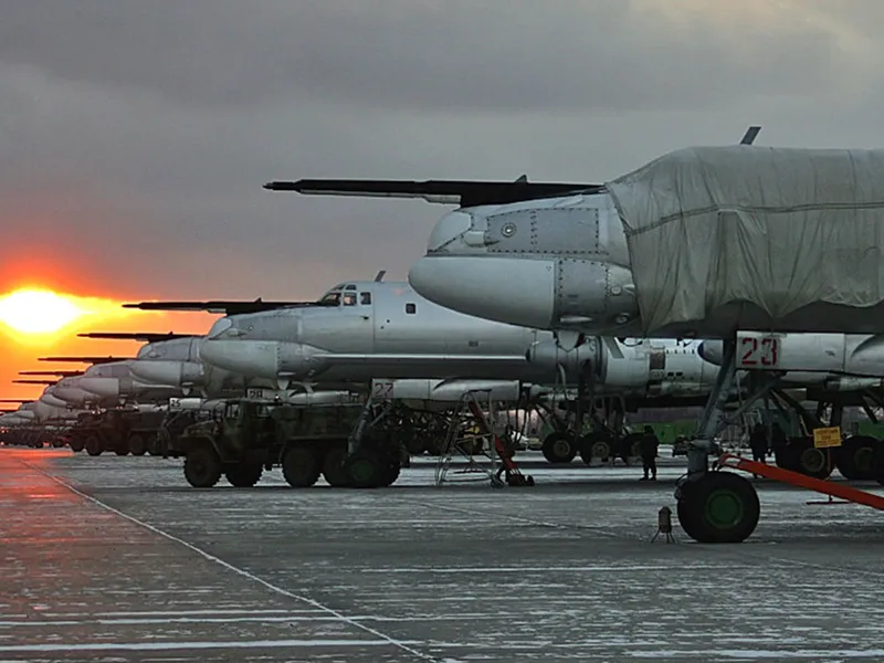 Imaginile din satelit au dezvăluit desfășurarea de Tu-160 "Blackjack" și a 20 de Tu-95 "Bear" la baza aeriană Engels, situată în regiunea Saratov, la 600 km de granița cu Ucraina.