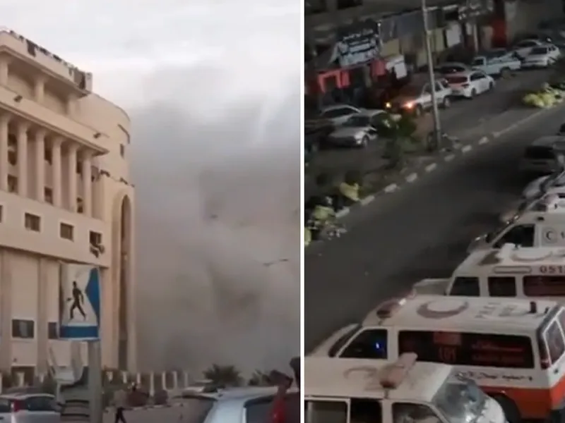 VIDEO Bombardamente intense lângă un spital al Semilunii Roșii din Gaza. Mii de refugiați sunt acolo