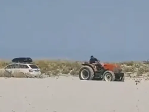 Un român care a intrat cu mașina pe o plajă din Grecia a rămas fără ea. Autoturismul a fost luat cu tractorul.