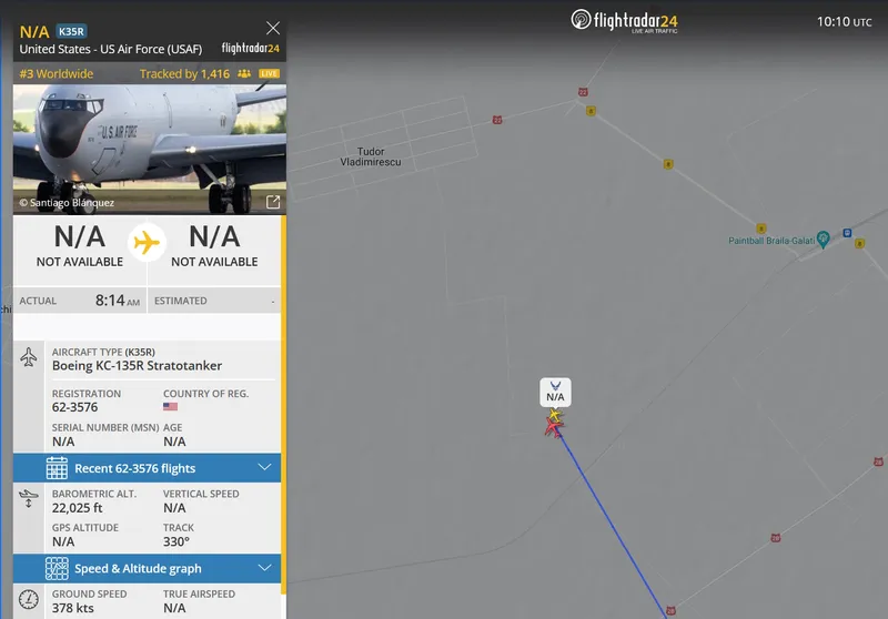 KC-135R tanker in a process of aerial refuelling P-8A Poseidon over Romania. One more P8 over Romanian coast watching Crimean west. RQ-4B over Black sea looking on Crimean SE, S & Kerch, in contrast to full focus on Novorossiysk last few days. pic.twitter.com/TlJ4AN2O3V