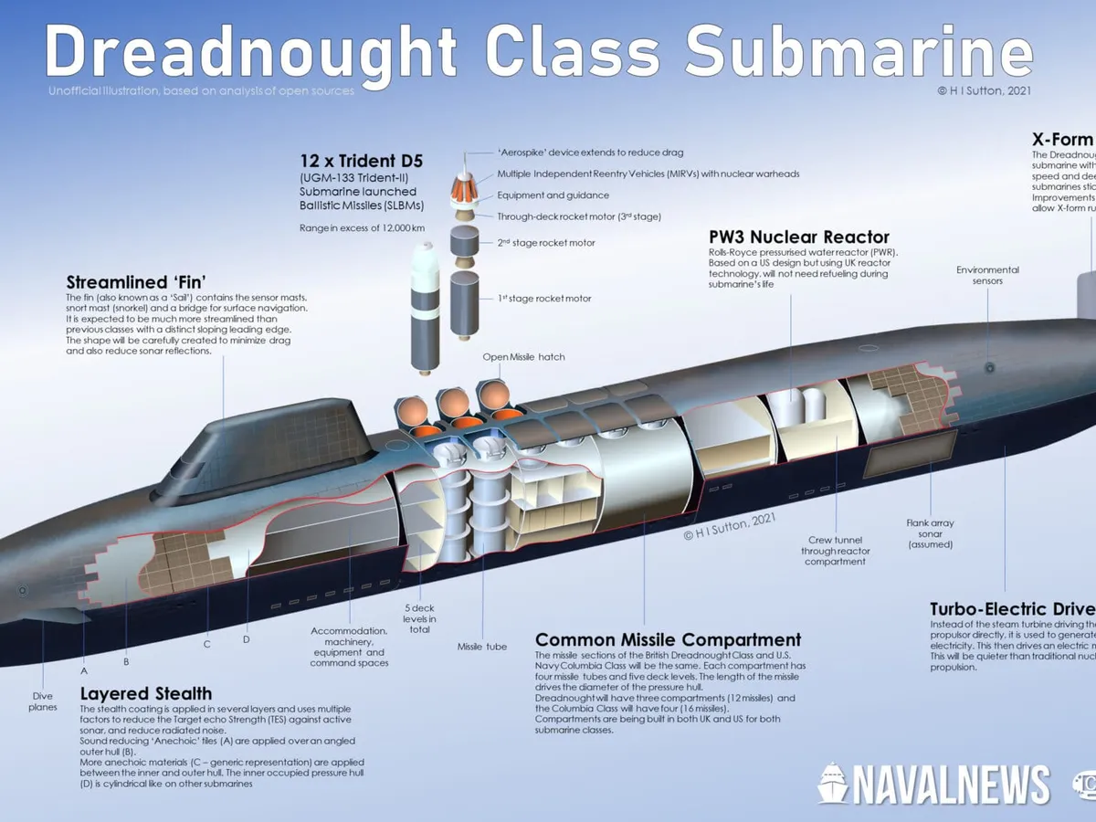 Ambarcațiunile din clasa Dreadnought vor folosi rachete balistice americane Trident II (cunoscute și sub numele de Trident D5) sau versiunile sale îmbunătățite.