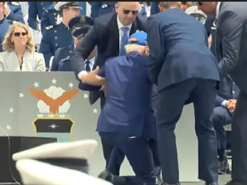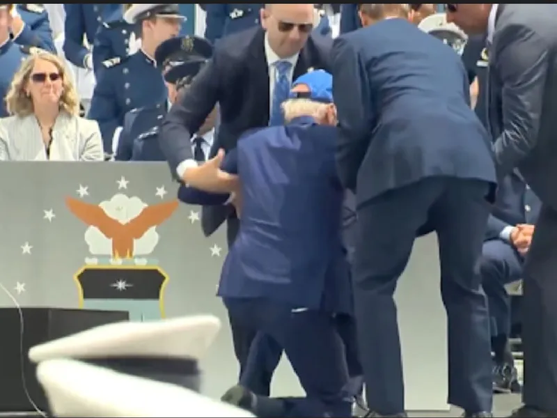Președintele SUA, Joe Biden, a căzut la o ceremonie a Forțelor Aeriene din Colorado. Biden, în vârstă de 80 de ani, a primit ajutor de la agenții serviciilor secrete și s-a ridicat repede.