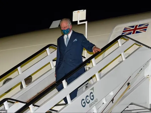 Prințul Charles a fost primit cu onoruri de către prim-ministrul Mia Motley și șefii militari, Garda de Onoare, iar salvele a 21 de tunuri au răsunat peste Aeroportul Internațional Grantley Adams.
