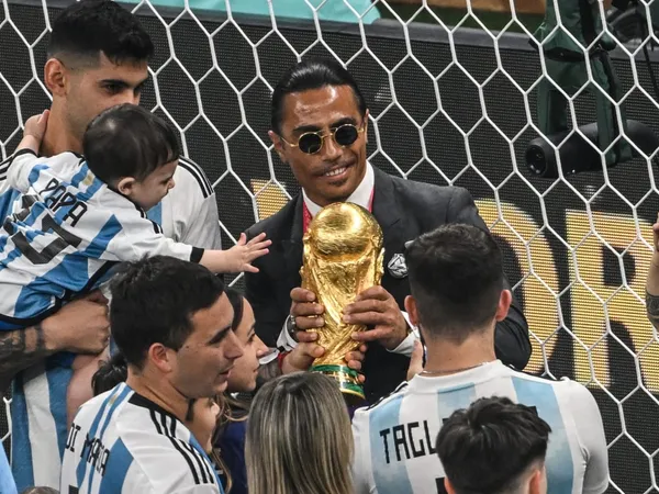 În weekend, „magnatul fripturilor” a fost unul dintre cei câțiva oameni cărora li s-a permis să intre pe terenul din Qatar după victoria Argentinei la Cupa Mondială împotriva Franței.