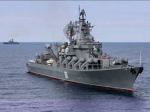 Grupul naval al Rusiei este condus de Varyag, un crucișător cu rachete din Flota Pacificului.