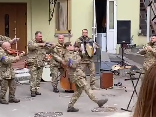 Militarii ucraineni care apără Kievul au lăsat pentru câteva momente armele din mână în favoarea...instrumentelor muzicale.