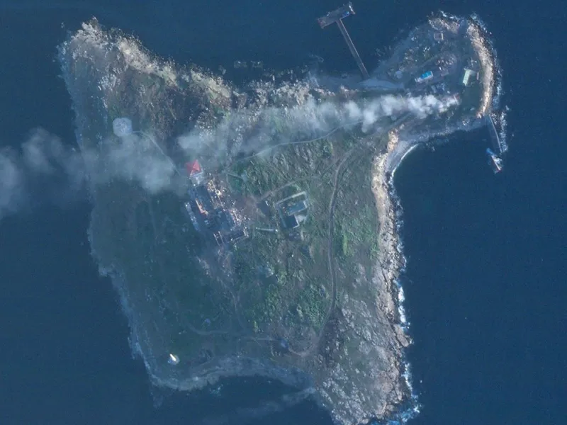 Ukrainian Armed Forces continue to hit Russian military targets on the #SnakeIsland. Drone Footage. pic.twitter.com/P9WdxtCLzZ