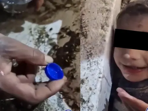 Salvatorii i-au dat să bea apă cu ajutorul unui capac, însă copilașul era atât de însetat încât din priviri a mai cerut un strop de apă după atât vreme petrecută în întuneric și frică.